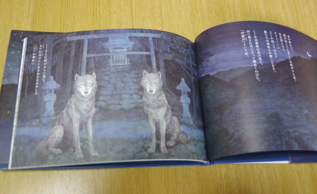 2018年に再建された七ツ石神社。そこに伝わる狼信仰をモチーフとして、再建までの実話を下敷きに創作した絵本です。